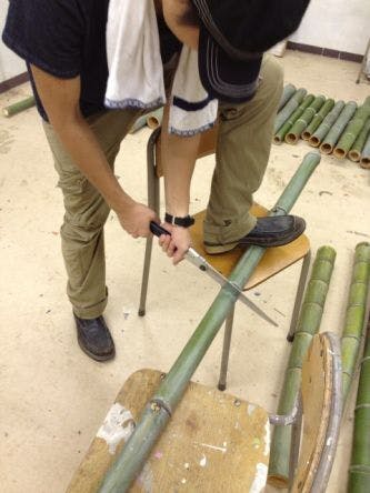 まずは当日の校内を飾る"とあるもの"のためにひたすら竹を切っているイベ凸さんの図。