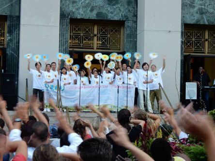 そして、「ひまわり」の歌が始まって、サビの部分「風が吹いても曲がっても~~」と言いながらうちわを振ると、それを見た観客のみなさんが、うちわに合わせて手を振ってくださったのです。