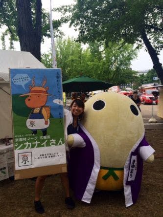 僕がこの夏すごい心に残ってるんは、京都府のゆるキャラ、まゆまろさんと一緒に写真撮れたことやなぁ。