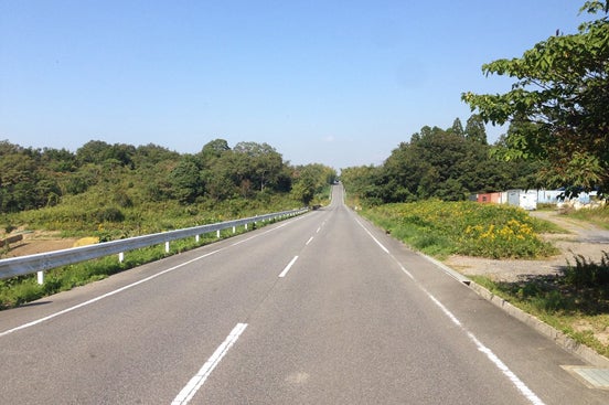 ↑ 知多半島の風景|この雄大なまっすぐな道。町並みから一本はいるとこんな風景が広がるのも、知多半島の魅力です。