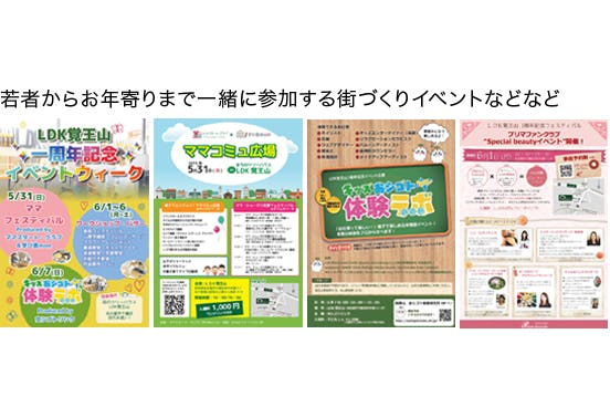 「LDK覚王山」は、愛知県の名古屋市内にある、ブックカフェ、キッズルーム、ダンススタジオ、デイサービス、英会話教室などの店舗が併設し、上階に50戸のマンション棟が併設した、子供からお年寄りまで利用できる一風変わった地域活性化型商業施設です。2014年5月にオープン。