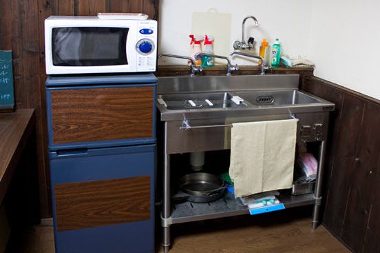 既存の家庭用のキッチンを飲食営業の許可が取れる程度に改装し、業務用冷蔵庫、製氷機、ガスコンロ、作業台などをそろえます。