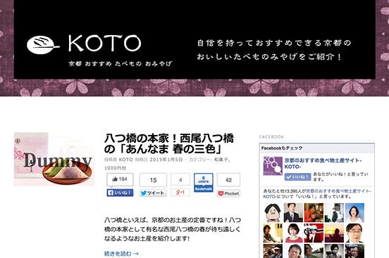 「KOTO(K:京都 O:おすすめ T:たべもの O:おみやげ)」は、京都のおいしいたべもの土産の情報をお届けするサイトです。