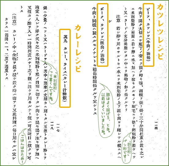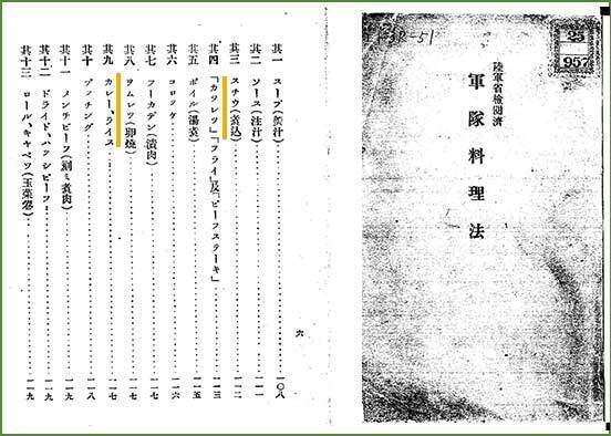 『軍隊料理法』カレー、カツレツレシピ