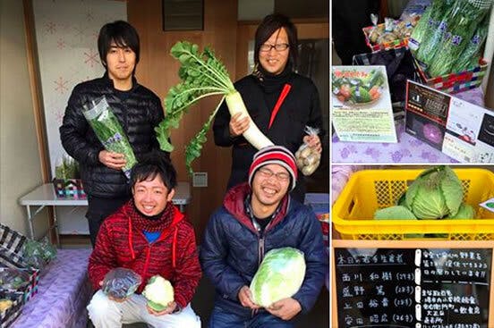 ・シェアハウスでの朝市の様子。堺市の若手農家さん。