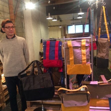 ダブラブヨブスさんの作品は、ろう引き加工された帆布を使用しており、使い込むほどの経年変化を楽しむ事ができます。