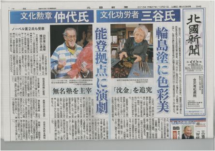 「伝統工芸(輪島塗)と戦争」というテーマで撮影させていただいた輪島市の三谷さんが文化功労者に選ばれました!おめでとうございます!そして、改めて撮影協力ありがとうございました!