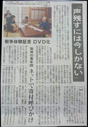 北陸朝日放送さんは先日から取材に来てくださっていました。 【放送予定の内容】 日時:9月11日(金) 番組名:HAB週刊Jチャンネル チャンネル:5CH 放送時間:17:36~17:53 毎週金曜放送の戦後70年企画「たった70年前の戦争」にてVTR6分程度
