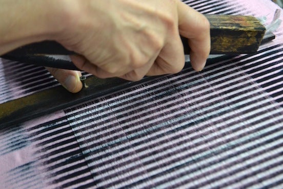 石川県でつくられる麻織物の最高級品「能登上布」。製造元は現在、県内に一軒のみになっています。夏用の着物に使われるこの生地は、糸を一本一本、職人さんが手作業で染め、織り子さんが昔ながらの機織り機を使って、織られていきます。 ▲職人さんによる手作業 数百年続く、このものづくりは現在、日本各地から集まった若い織り子さんによって受け継がれていますが、職人さんの数が減ってしまい継続がとても厳しいのが現状です。 取材活動で知った北陸の工場や工房が抱える問題。きっと全国各地にも同じような問題を抱えた昔ながらのものづくりの現場が存在すると思います。どんどん便利になっていく私たちの暮らしですが、その一方ではこのような手間ひまを必要とするものづくりが失われつつあるのです。大量生産、大量消費が主流になった日本、もので溢れかえってしまっていないでしょうか。少し立ち止まって、これからのものづくりについて考えることが必要なのではないでしょうか。