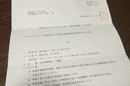 本日は掛川市役所を訪問し、申請していた「地方創生シンポジウム in かけがわ」の掛川市後援名義使用について許可することを示す文書を交付いただきました。