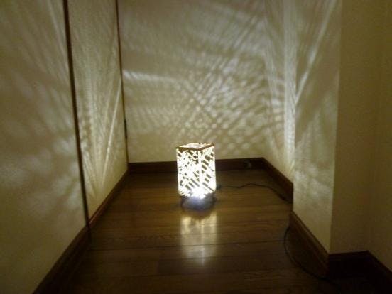LEDの光によって浮かび上がる京都の伝統的な紋様が、お部屋の中に「和」を彩ります。