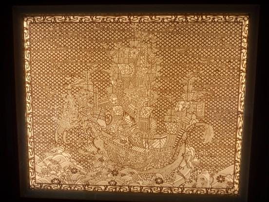 京都の京友禅の染型や、西陣織の紋紙を用いて作ったLED照明です。