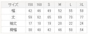 Tシャツのサイズについて:以下サイズ表をご確認頂いたうえ、備考欄にご希望のサイズをご入力下さい。