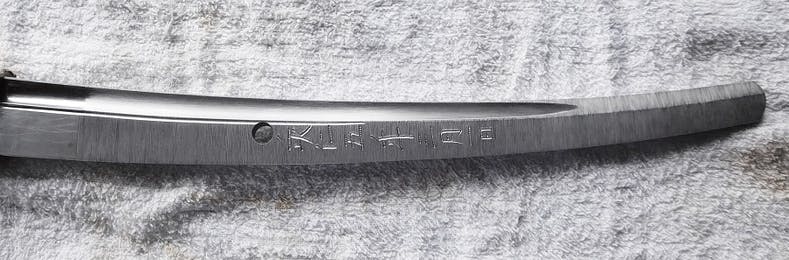 先月、銘を切って登録を行いました。冒頭の写真は刻銘の途中で、本歌に切ってあった銘だけが入っている状態を撮影しました。