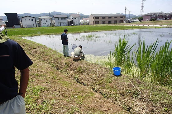 水田の水生生物調査の様子 私たちがつくりたい「もろこの里」は、「子どもたちに、生きる力を感じてもらう」をコンセプトにしています。最近では、子どもたちが外で遊ぶことが減り、自然の生きる力を感じる機会が少なくなっています。そのため、自分自身も生きる力が弱くなり、大人になってからも、心の病気になる人が増えています。そこで、子どもたちに自然の生きる力を感じてもらうためにも、「もろこの里」を作りたいのです。