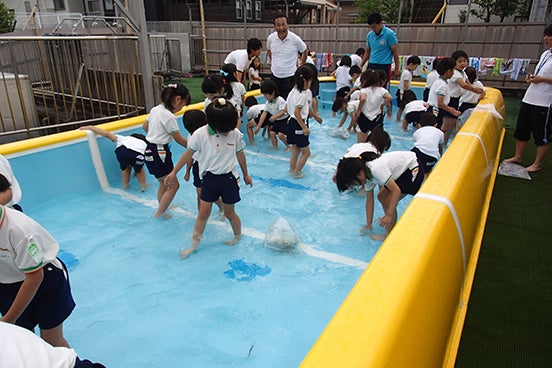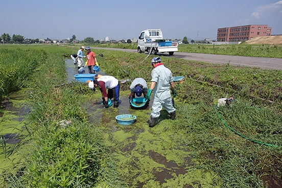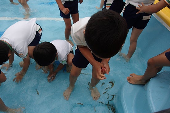 水田で育てたホンモロコや水生生物を持参して、幼稚園の体験学習に今年の六月に出かけました。子供たちは前のめりになって手を挙げ自分の知っている魚のこと、田んぼのことを一生懸命話してくれました。そして、夏のプールにホンモロコを放った時一斉に大きな歓声があがり、皆がプールの中に駆け出しました。その姿を目の当たりにしたとき、心の底からやってよかったと思いました。