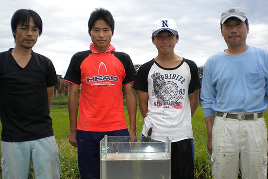 当グループでは、休耕田でのホンモロコの養殖を研究しています。子供たちの暮らすすぐそばに生き物がいることを感じて欲しいのです。水田での水辺の生き物観察やホンモロコが生きる環境にやさしい稲作づくり、そして食物連鎖を通じて、生きる力を感じる教育の場を地域の田園地帯に作りたいのです。 そして、日本農業を取り巻く厳しい情勢の中で、ホンモロコとお米を一緒に収穫できる付加価値の高い水田をつくり、住宅と農地が混在する地域でしっかり農業を継続していきたいと考えています。