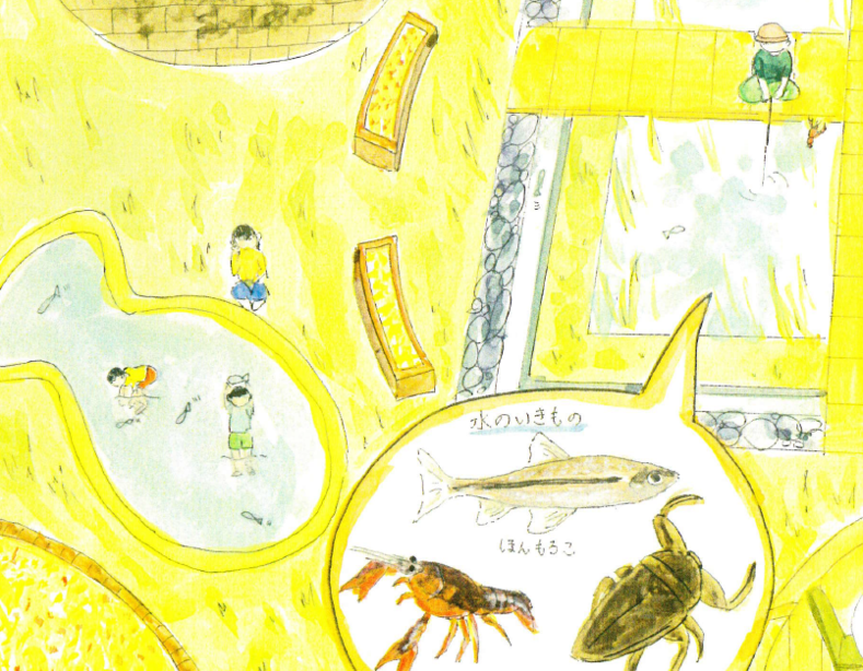 ホンモロコの泳ぐ水田には水中のギャングと呼ばれるタガメや、アメリカザリガニ、ミズカマキリなどいろんな水生生物が集まってきます。子どもたちの暮らすすぐそばに生き物がいることを感じて欲しいのです。水田での水辺の生き物観察やホンモロコが生きる環境にやさしい稲作づくり、そして食物連鎖を通じて、生きる力を感じる教育の場を地域の田園地帯に作りたいのです。