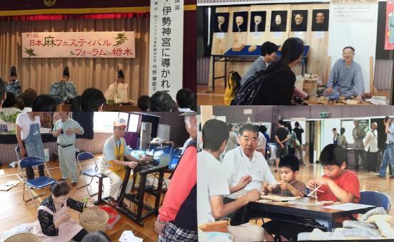 「第4回日本麻フェスティバル」では、麻を中心とした日本の伝統文化・生活文化の展示をメインとして、体験会(麻と古布わらじ作り、麻紙作り、畳コースター作り等々)、麻系の物販・展示(なお弊会の麻(ヘンプ)は