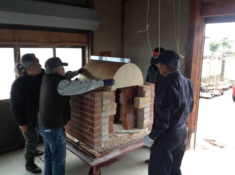 耐火煉瓦(白い煉瓦)は山本さんが描いた図面通りに並べることでビシッときましたが、外側の赤レンガは目地の調節が難しかったです...。