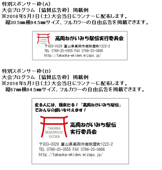 ・特別スポンサー枠(A)(B)*5月7日当日の北日本新聞「協賛広告枠」への掲載