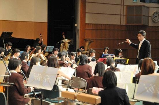 福知山成美高校吹奏楽部、中学生有志、公募有志メンバー、プロ奏者10名、総勢50名による演奏。