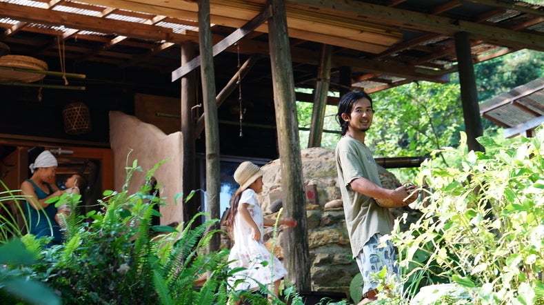 ▲禅の湯スタッフ、“まっつん”の自宅は、薪・石窯・畑・庭などが手作り。