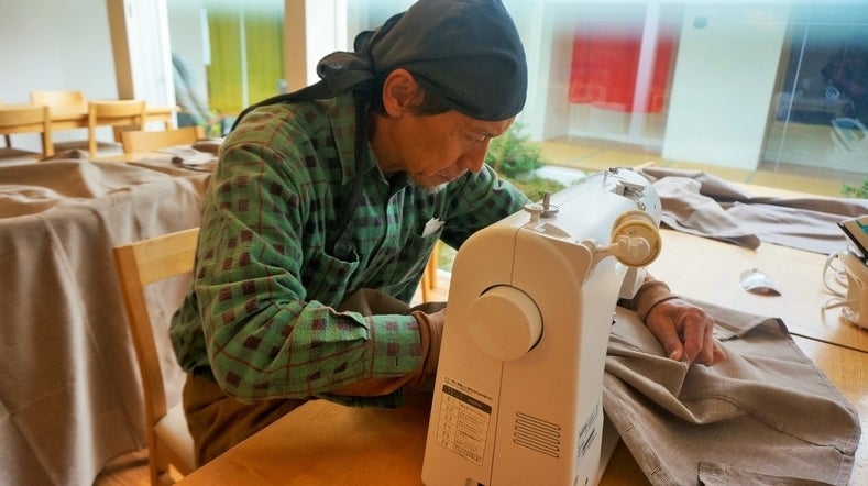 ▲服飾関係の学校に通っていたかっちゃん。時にはミシンもかけるし、お布団を繕うことも楽しんでやってくれます。