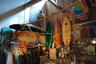 ▲日本では手に入らないサーフボードやファッションアイテムが並ぶ店内。かっちゃんの世界のすべてがこのお店を通して表現されました。