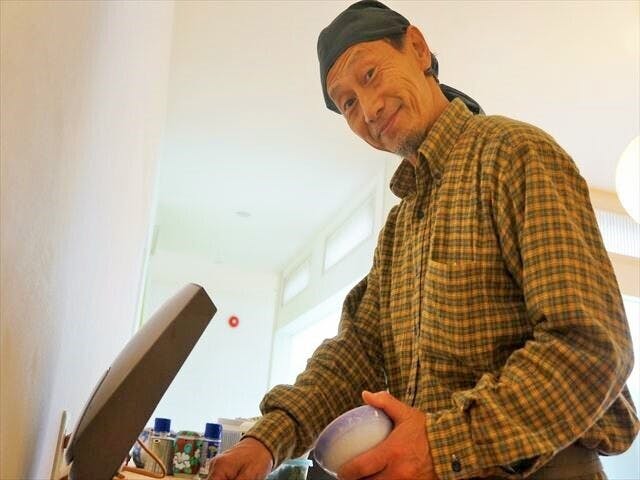 ▲禅の湯スタッフの かっちゃんです。宿に関わる業務は何でもやります。