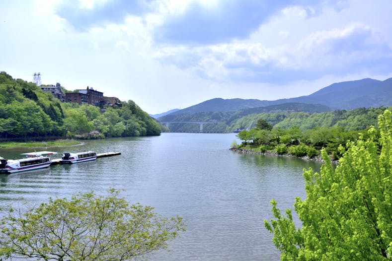 [ 観光船が遊覧する景勝地・恵那峡 ]