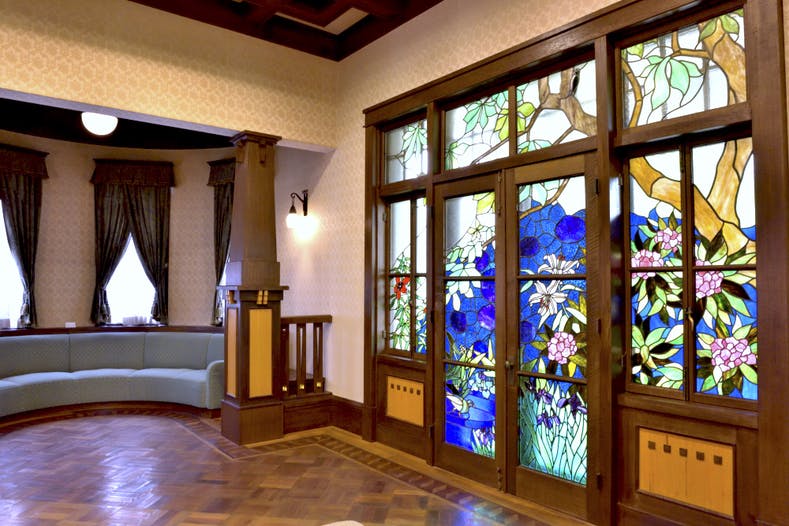 創建当時は東二葉町にあり、その斬新さと豪華さから「二葉御殿」と呼ばれ、政財界人や文化人の集まるサロンとしての役割を果たしていました。大きな窓とステンドグラスで自然光を取り入れ、電力王の住まいにふさわしく、当時はまだ貴重であった電気を用いた照明が数多く使われていました。