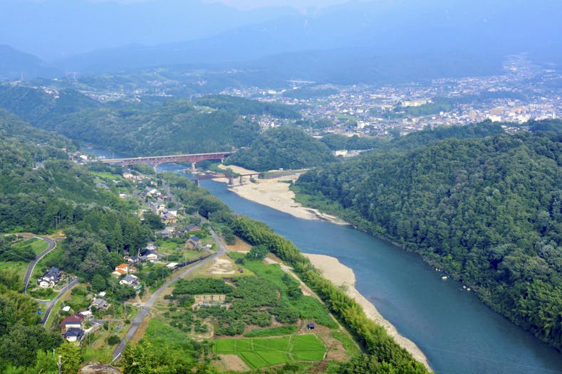 さらに下流域にあるのが八百津町。古くは上流から運ばれてくる木材を筏(いかだ)組みにして名古屋の白鳥貯木場まで運ぶ、流通拠点として栄えた街です。八百津とは「たくさんの港」という意味ですが、発電所開発や国鉄中央線、中央高速道路の完成で港としての役割を終えました。