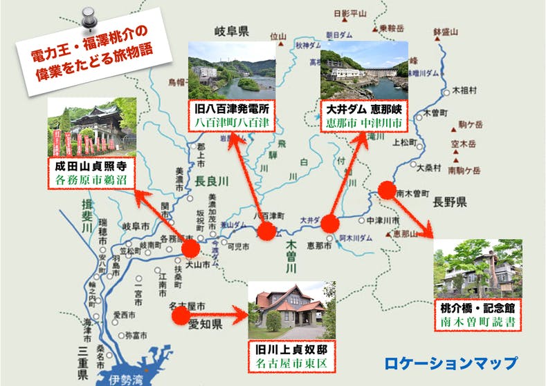 木曽川流域には自動車や航空機など、ものづくりに強い今日の中部地域を築き上げた産業発展の歴史が凝縮しています。当プロジェクトは、この地域をより深く知ってもらい観光客にもっと訪れてもらう目印とするために、福澤桃介による水力発電の開発史をたどる旅番組を制作するものです。