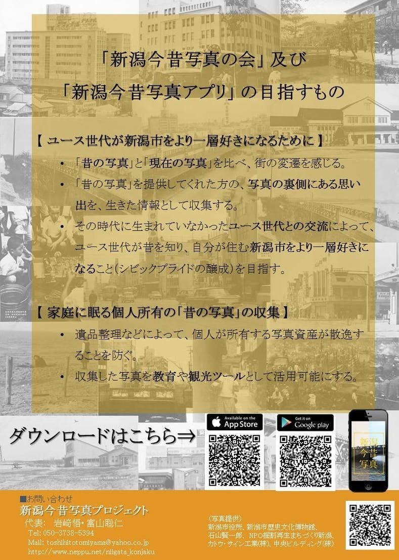 新潟今昔写真のアプリ開発、イベント開催に向けた支援をお願いいたします。