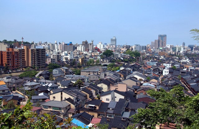 ▲金沢の街を一望。昔ながらの街並みが残っています。