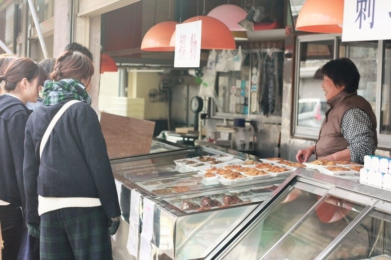 魚屋さんや味噌屋さん、酒蔵に、お菓子屋さんのほか、若い人たちが営む飲食店や雑貨屋さん、中高生や大学生の拠点にもなっているツルハシブックスという本屋さんもあります。