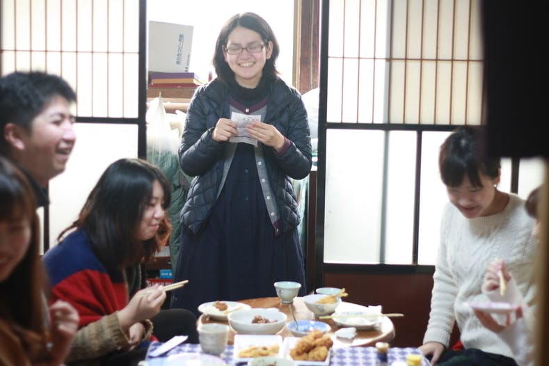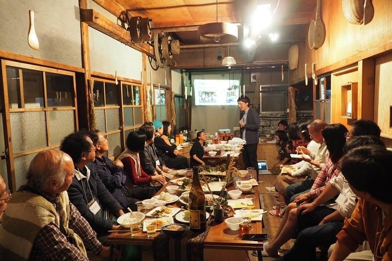 2016/10/18 20:01たくさんの方にご支援いただいて、進めることのできた「つながる米屋」プロジェクト。 この夏と秋にかけて、これまたたくさんの方にご協力いただいて、とうとう完成いたしました! 10月15日(土)にお披露目パーティーを行いました。 内野暮らし研究所の拠点となる、スペースが会場です。 多くとも、10-15人で開く内野暮らし研究所を想定してつくったスペースなので、30人(!)ほどが集まってくださったパーティーには少し手狭。 それでも、皆さんにこやかに譲り合って過ごしてくださいました。改装を手伝ってくれた大学生、通りかかるたびに声をかけてくれたご近所さん、私たちの投稿に「いいね!」で応援してくれた支援者の皆さん、改装に必要な道具を貸してくださった方、これからもたくさん活躍しそうな装飾品を分けてくださった皆さん、様々な方が集う場となりました。 内野町の方たちや、お世話になっている方たちが分けてくださった暮らしの一部を重ね合わせて作った空間です。 内野町の方からいただいた布でつくったタペストリー 飯塚商店の表のスペースの装飾には、内野町で頂いた調理具や飯塚商店の古い床板を使いました。コメタク代表の愛梨ちゃんと、デザイナーの芽衣さん、そして改装をたくさん手伝ってくれた西尾さんと。 内野駅前の海産物屋「大口屋」さんの全面協力のもと、料理にも飯塚商店らしさと内野町らしさを。おにぎりに、サラダに、元助さんのアジフライに、豚汁に、お漬物。 メイン料理は、コメタクの母のような存在である野呂さんお手製のパエリア。大口屋さんの鯛の出汁が使われています。 最後まで、いろんな方の手で一緒につくってもらいました。 そんな空間を今後、どのようにつかっていくのか、私たちの頭の中も紹介いたしました。 これは、追々、こちらでも紹介していこうと思います。 つくって終わりではありません。これからが本当の始まりです。 私たちが、皆さんと一緒につくったつながる米屋の「内野暮らし研究所」は、飯塚商店という商いと暮らしが共にある空間の中にあります。 空き家の中に新しくできた空間ではなく、生きている家の中にできた空間なのです。 だからこそ、本当の意味での「内野暮らし」を研究できるとも思っています。 そこには既に飯塚さんの暮らしがあるのだから。 そして、私たちはこの「内野暮らし研究所」を大切にすると同時に、飯塚さんや飯塚商店の従業員さんやお客さんたちの暮らしも大切にしたいです。 独りよがりな場であってはならない。私たちや私たちの好きな人たちの「好き」を崩すような場であってはならないのです。 私たちの中には、「好き」な人、「好き」な景色があります。そのことを共有できる場をつくることで、誰かの「好き」や、その「好き」の入る「隙」が増えるはずだという仮説を研究していきます。 今は、気持ちの良い責任を背負っているような気がしています。つくったものと、つくっていくものへの責任。気持ち良いと思える人たちとつくることのできた空間だからこそ抱ける気持ちなのでしょう。 皆さん、本当にありがとうございました! コメタク代表の愛梨ちゃんは、いろんな人に愛されていろんな人を巻き込んで動き回ってくれました。有紀ちゃんも、他の地域と内野を行き来しながら、良い風を吹き込んでくれました。 デザイナーの芽衣さんは、目一杯の試行錯誤と目一杯のユーモアで私たちの「好き」を詰め込んだ空間をつくってくださいました。 インターンの磯部くんは、力仕事もワークショップの進行も請け負って楽しそうに動いてくれました。 それもこれも、クラウドファンディングで支援してくださった皆さんと、「自分にできること」を考えて動いてくださった全ての皆さんのお陰です。 昨日、飯塚商店のおばあちゃんとお隣さんが窓越しに話している様子を見聞きして、さらにこの場所への「好き」が増えました。出来立てほやほやのこの場所が少しずつ馴染んでいきますように。 さて、これから。 いよいよ始まります。気持ち良いスタートを、ありがとうございました! もっと見る