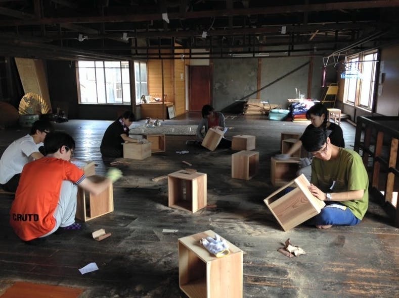 (昨年の夏のワークショップの様子。椅子や本棚にする箱づくり)
