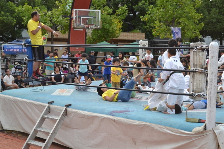 そして私自身、小学校5年生の時にちょっとした事から、いじめにあってきました。その時に出合ったのがプロレスでした。倒れても倒れても立ち上がる選手の姿に「私も頑張る‼立ち向かおう‼」と、弱い選手に自分を重ね、自ら立ち上がった経験を子ども達に伝えるために、学校では受けられない授業として、2010年より「いじめ撲滅・元気創造」イベントとして開催しています。