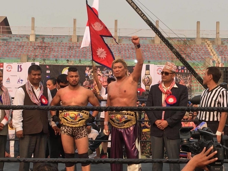昨年、このイベントの中で、「Pray for NEPAL」として、大地震を受けて大変なネパールへの募金を皆様にお願いしました。そして、それを持って4/12~4/18にネパールへ行きプロレスを開催してきました。大地震の後、大変な時もみんなで力を合わせ、この大会の為に練習し、当日は5000人が集まり大成功の大会となりました。そして今年は、この大会で優勝した地元ネパールのレスラー”ヌアコテタイガー”と、ネパール初の女性レフリー”スニータ”を招待し、ネパールで震災にあってからも頑張っている話も、子ども達に聞いてもらいたいと考えています。