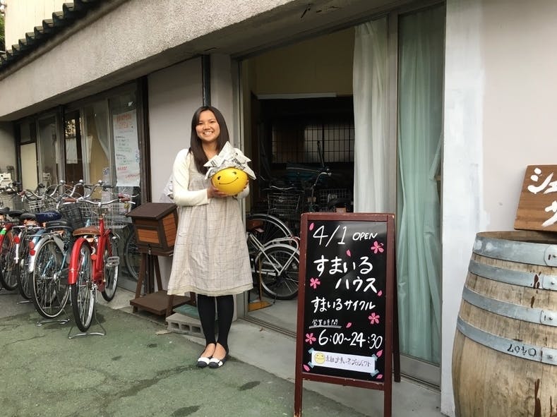 まなvivaは私たち京都すまいるプロジェクトのすまいるハウスの2階にあります。すまいるハウスの1階ではシェアサイクル・レンタサイクルの『すまいるサイクル』を運営しています。どちらもまだ始まったばかりですが、種類の違う2つを同じ建物でするため、より多くの人に来てもらえる場所になるのではないかと思っています。