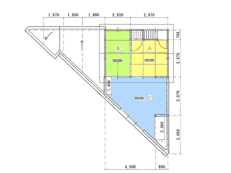 現在、まなvivaは3部屋あり、それぞれを学生さんなどのミーティングスペースとして使っていただいています。なんと建物の形が直角二等辺三角形なんです!
