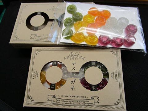 味は「オレンジ」、「アオリンゴ」などの五種類で、全ての味が一箱に詰まっています。また、製法、味、色、パッケージ、全てにこだわりを持って作られています。眼鏡職人味というものもあり、味は食べてからのお楽しみです。