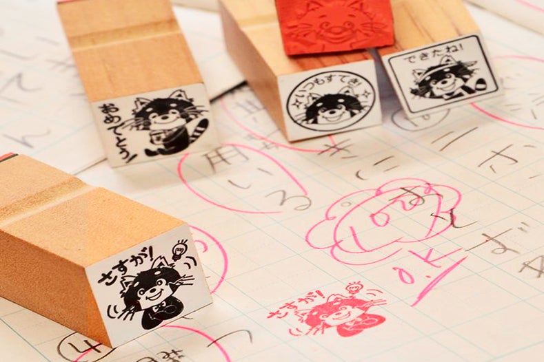 この「ほめほめスタンプ」ですが、作製したのはもちろん私たち小林大伸堂ですが、デザインは地元の仁愛短期大学の学生さんたちと一緒に作り上げていきました。