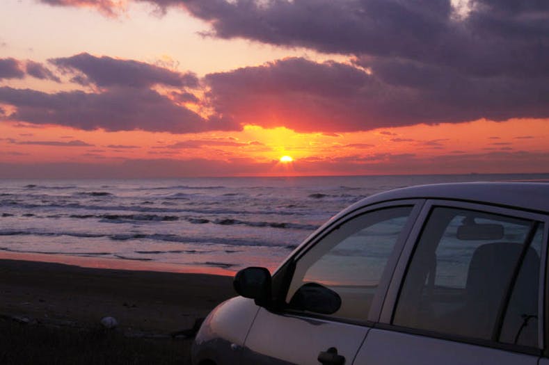 夕日を見ながら砂浜をドライブするのは格別。気持ちいい風と綺麗な夕日は、感動できる瞬間。車から降りてポーズを決めて撮影する人もたくさんいます。
