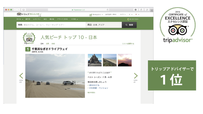 トリップアドバイザーアワード2016で日本一のビーチに!