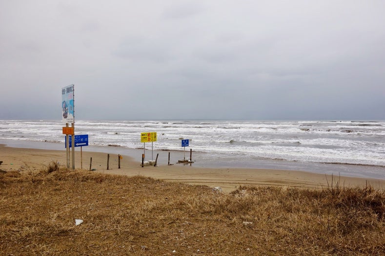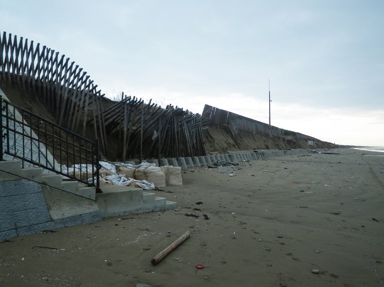 砂浜が著しく侵食され、10年後にはなくなってしまうかもしれない。