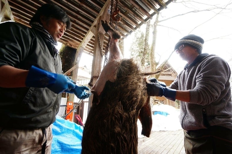 一方で、2015年度、害獣として駆除されたイノシシは4000頭いるのに、9割以上が食べられず埋めたり燃やしたりされています。利益がでる仕組みになっていないので、せっかくの命が無駄に捨てられ、狩猟免許をとった若い人たちも、なかなか猟師を続けていけないのです。