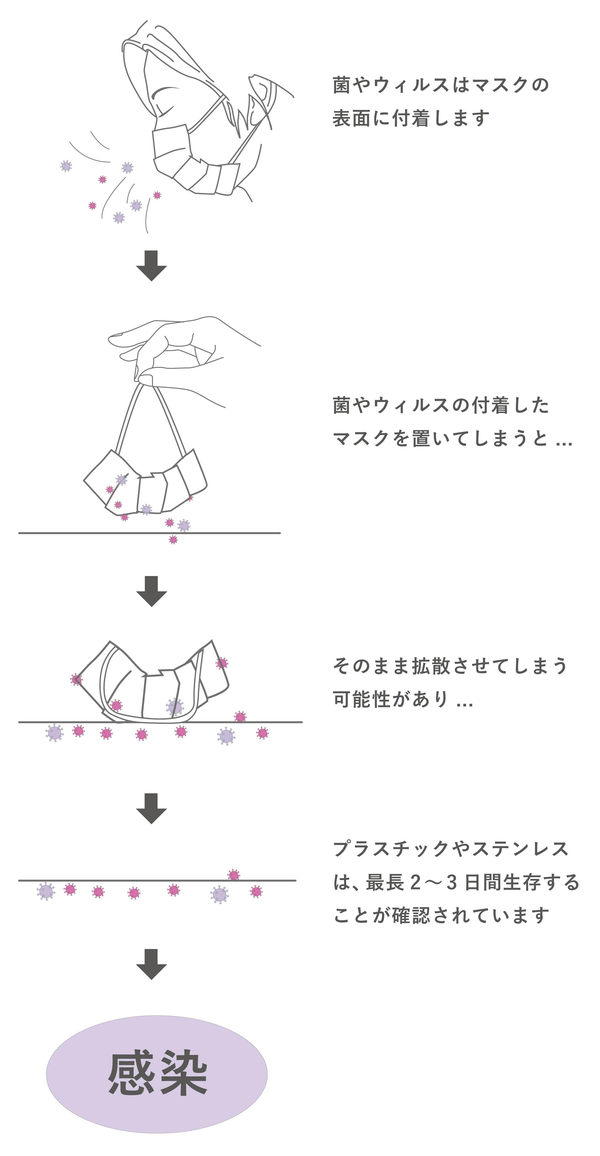 マスクポーチに入れて頂くだけで、菌の増殖を抑え、感染確率を大幅に